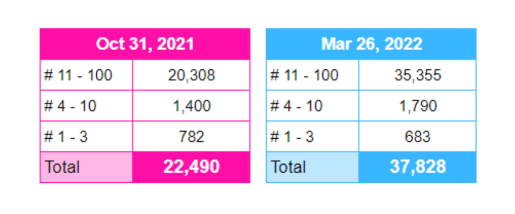 - Keywords ranked #1-100 (at end): 37,828 (68% increase)