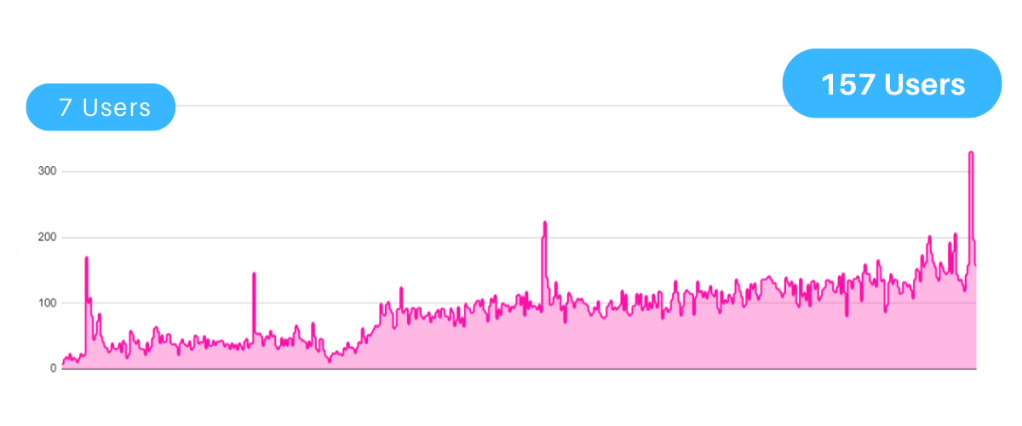 - Sessions per day (as of Dec 2021): 180 (1,400% increase)
